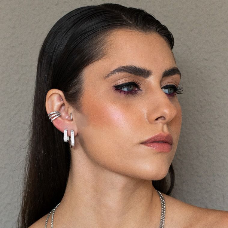 Adquira também o Brinco Duo Argola Retangular Ródio Branco no tamanho G e forme o conjunto.