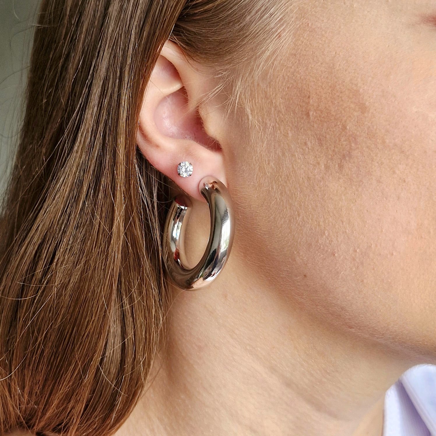 As argolas tubulares prateadas chegaram para dar aquele toque de estilo moderno e minimalista ao seu look!