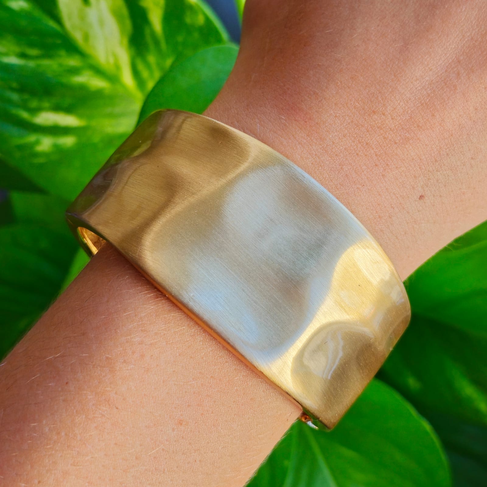 Imponente e sofisticado, este bracelete largo com banho de ouro acetinado é a definição de luxo atemporal. Seu acabamento suave e fosco traz um toque moderno e refinado, perfeito para quem deseja um acessório marcante sem abrir mão da elegância. Use sozinho para um look poderoso ou combine com outros acessórios para um efeito ainda mais impactante!
