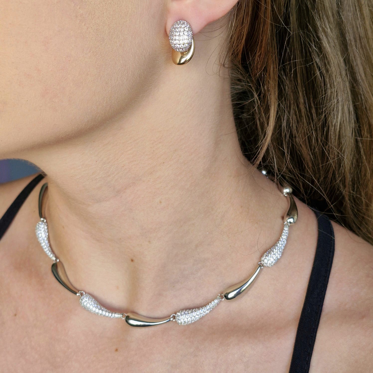 Com design inteligente e visual sofisticado, este brinco traz o brilho do pavê em formato oval combinado com uma tarraxa prateada que também funciona como elemento decorativo. A grande sacada? Ele pode ser usado de duas formas: com ou sem a base prateada — adaptando-se perfeitamente a diferentes estilos e ocasiões.