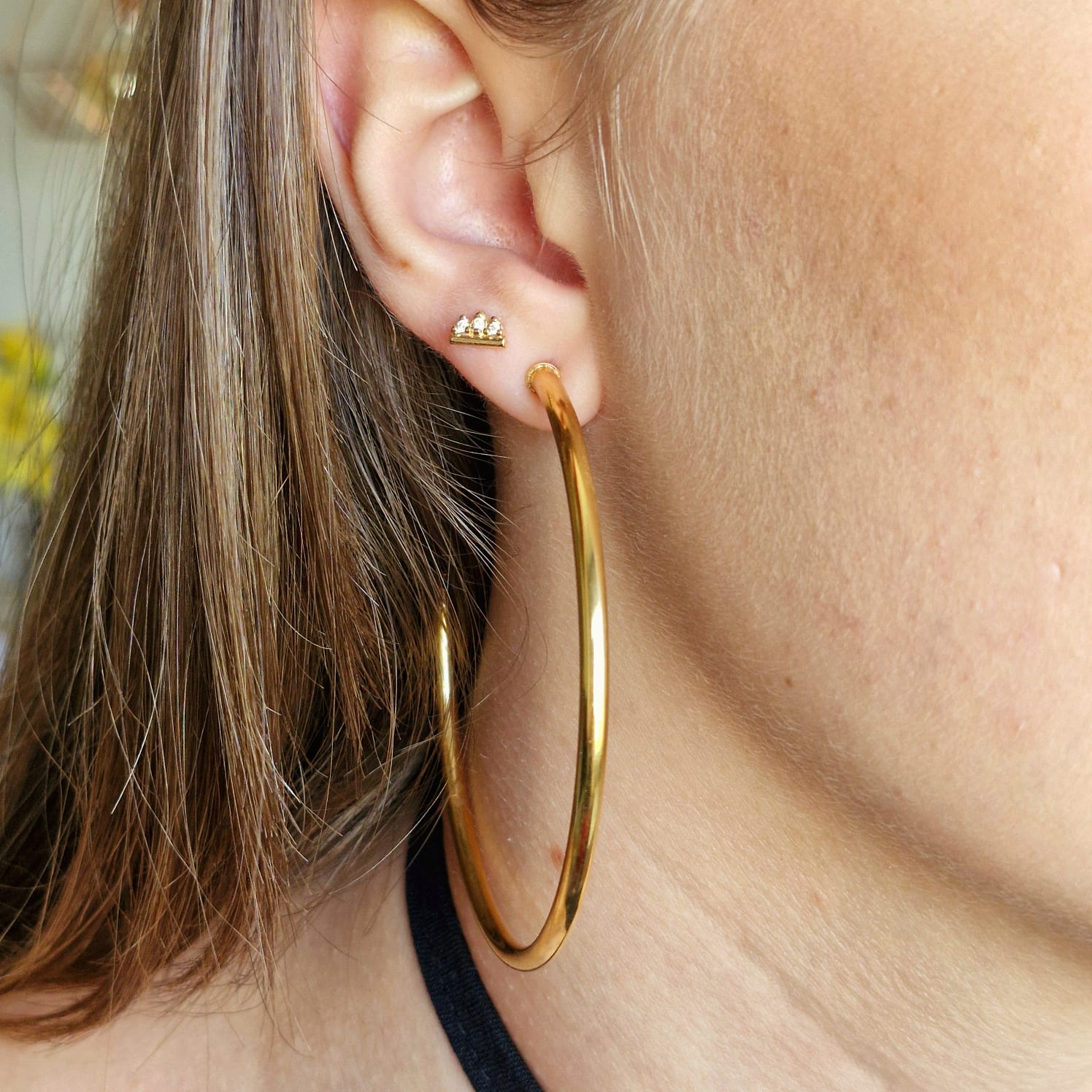 O clássico reinventado! Esta argola dourada, de design tubular fino e tamanho grande, é a definição de elegância minimalista. Com acabamento liso e brilho sofisticado, ela é perfeita para qualquer ocasião – do casual ao sofisticado. Leve e confortável, essa peça versátil é um must-have no porta-joias de quem ama acessórios atemporais.