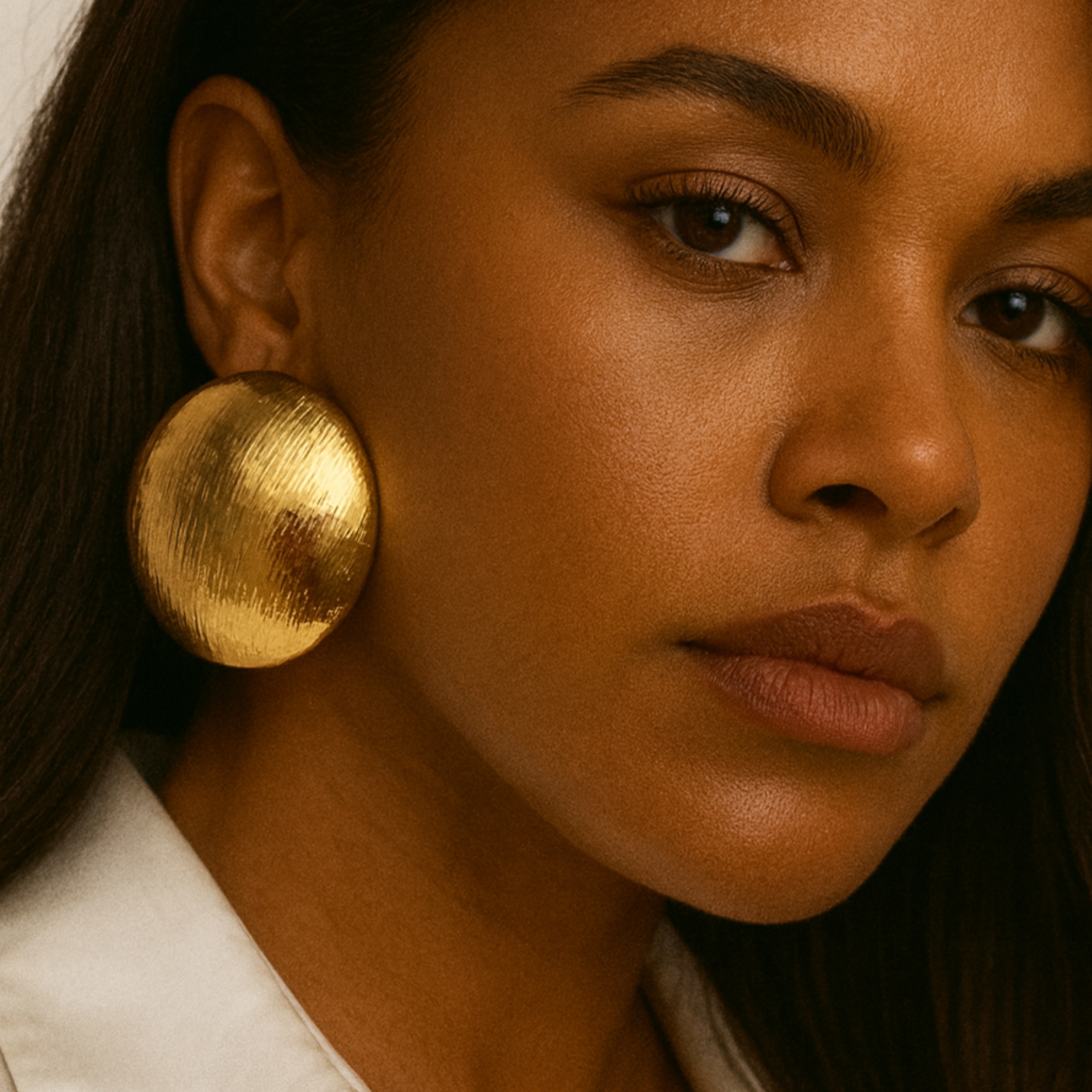 O Brinco Aurora é uma ode ao glamour atemporal. Com seu formato arredondado e acabamento texturizado em banho dourado, essa peça statement carrega a sofisticação das joias vintage com um toque contemporâneo. Leve e confortável, ele transforma qualquer produção básica em um look marcante — ideal para quem ama acessórios poderosos que revelam personalidade.