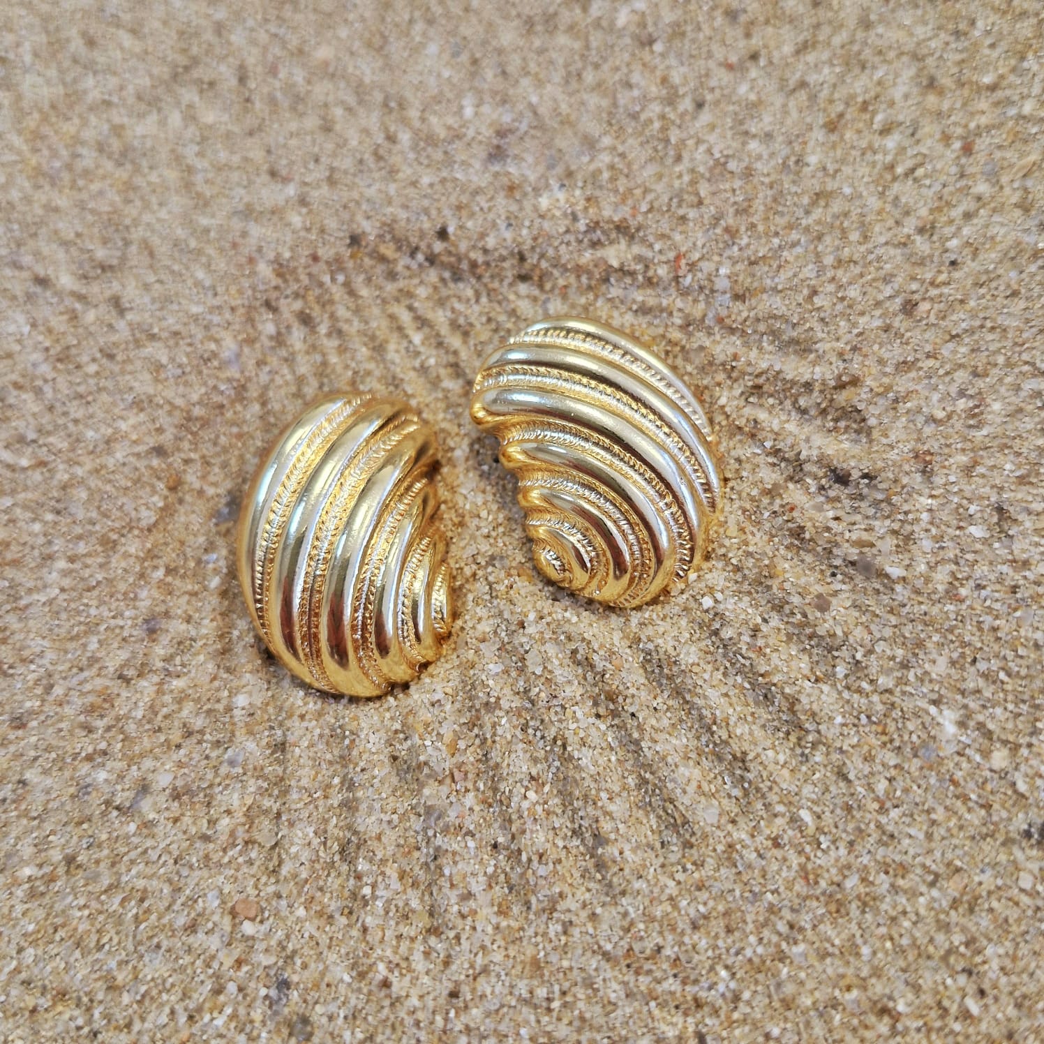 O Brinco Concha Médio Dourado equilibra presença e conforto em um design inspirado nas formas orgânicas do mar. Seu acabamento texturizado cria um jogo de luz sofisticado, enquanto o tamanho médio garante elegância com leveza no uso diário.