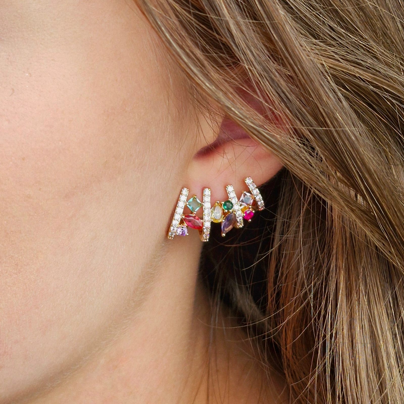 O brinco design de garra com zircônias coloridas é a peça perfeita para quem quer se destacar com elegância e modernidade. Seu design inovador envolve a orelha com uma pegada ousada e sofisticada, enquanto as zircônias cravejadas brilham intensamente, criando um efeito luxuoso e irresistível.