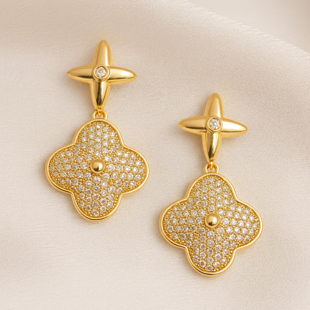O Brinco Flor Dourado é a tradução perfeita da sofisticação clássica com um toque moderno. Seu design floral, ricamente cravejado com microzircônias cintilantes, reflete a delicadeza e o brilho sutil de uma mulher elegante. A base lisa dourada com detalhe central em zircônia adiciona um ponto de luz refinado, enquanto o acabamento polido realça o luxo da peça. Ideal para compor produções noturnas ou elevar looks diurnos com um toque de glamour.