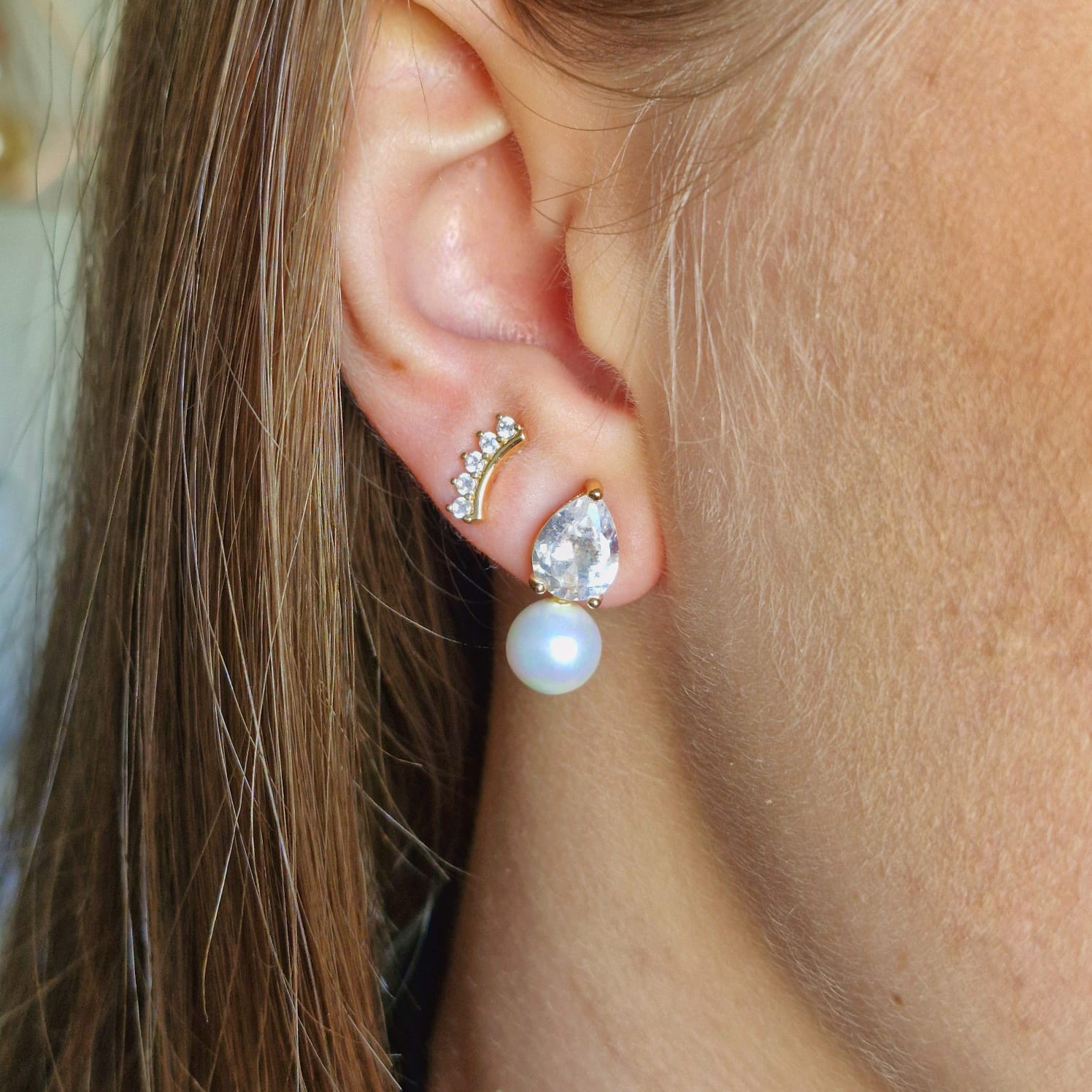 A combinação perfeita entre delicadeza e sofisticação! Com base em gota de zircônia e um elegante pingente de pérola, este brinco é um clássico atemporal que combina com qualquer ocasião. Versátil e refinado, ele adiciona um toque de brilho e elegância ao seu visual.