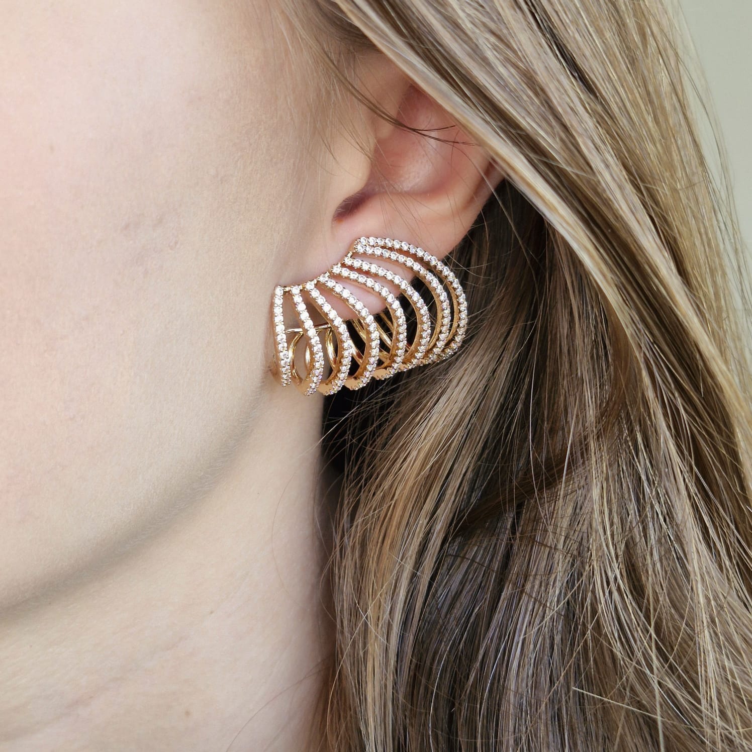 O Brinco Soleil é um acessório de luxo dourado e exuberante, com zircônias cravadas em um elegante design garra — que realça o brilho de cada pedra com imponência e requinte. Sua estrutura envolvente e acabamento refinado fazem dele a escolha perfeita para iluminar produções noturnas ou elevar looks clássicos com glamour instantâneo.
