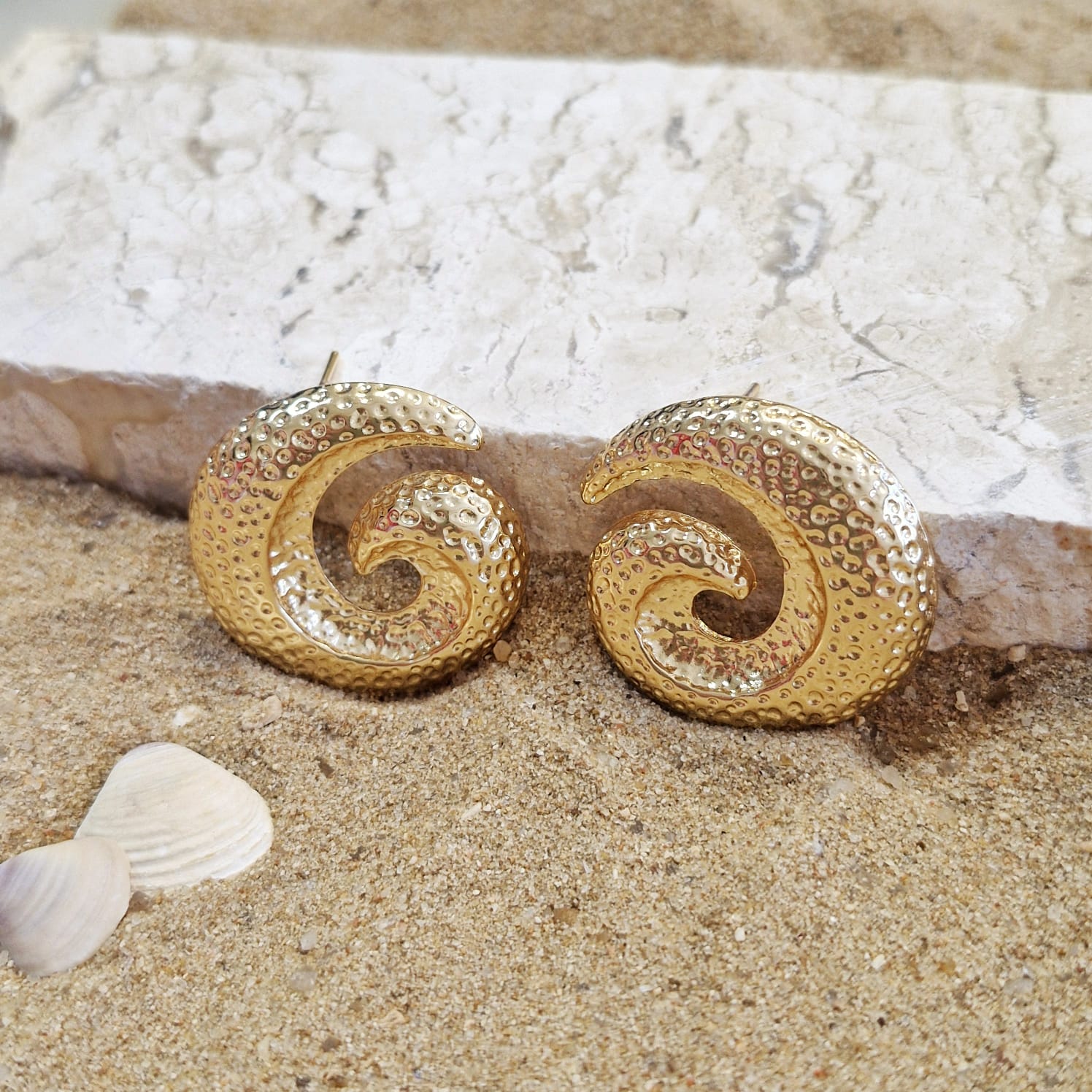 Os Brincos Dourados em Formato de Concha, da Coleção Beleza Marinha 2026, traduzem a força e a elegância do oceano em um design escultural e contemporâneo. Inspirados nas formas naturais das conchas, apresentam acabamento texturizado e brilho dourado intenso, criando uma peça de presença marcante e sofisticada.