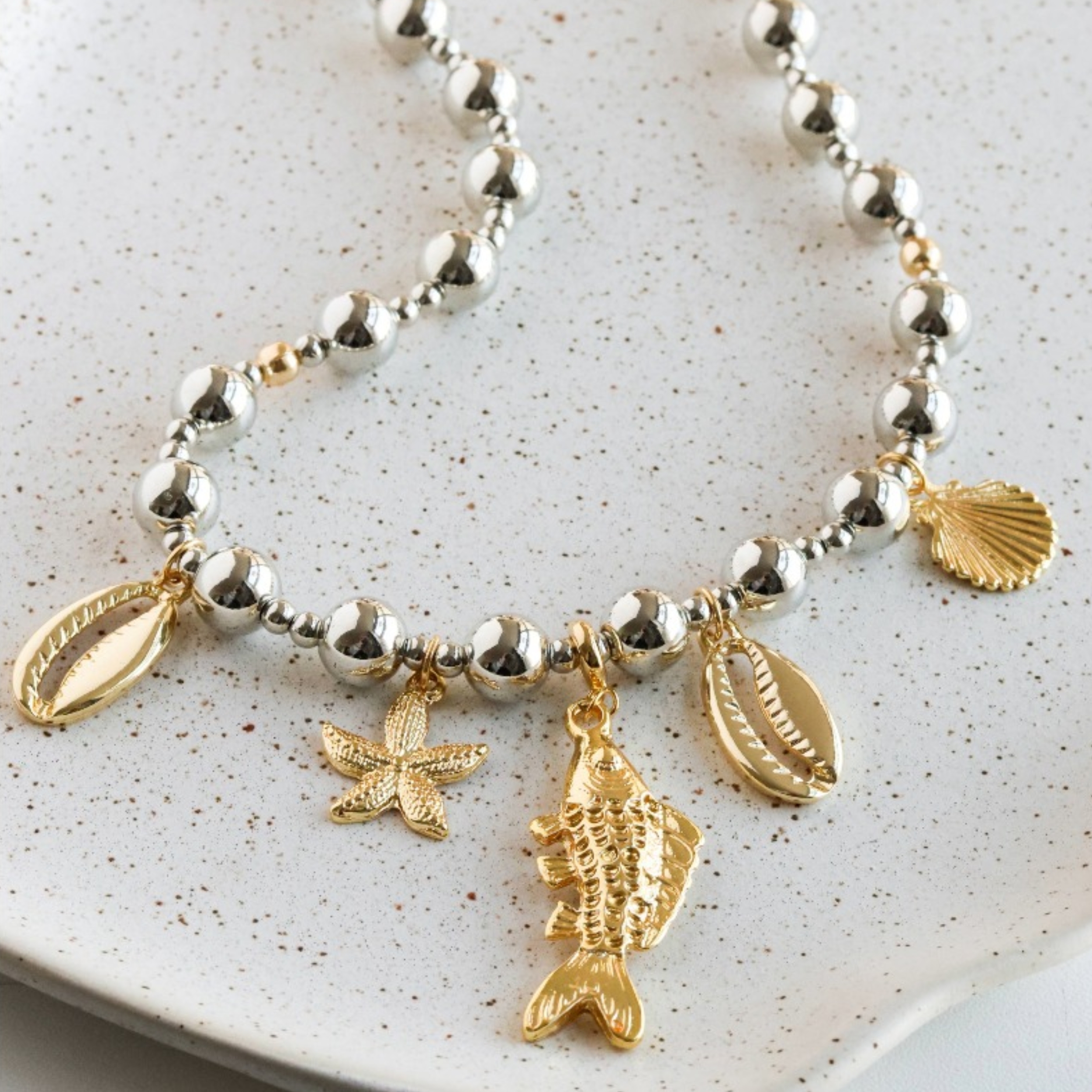 Inspirado na riqueza e nos encantos do oceano, o Colar com Conchas, Estrela-do-Mar e Peixe da coleção Beleza Marinha 2026 é a peça que traduz o espírito do verão europeu e a sofisticação dos acessórios temáticos.
