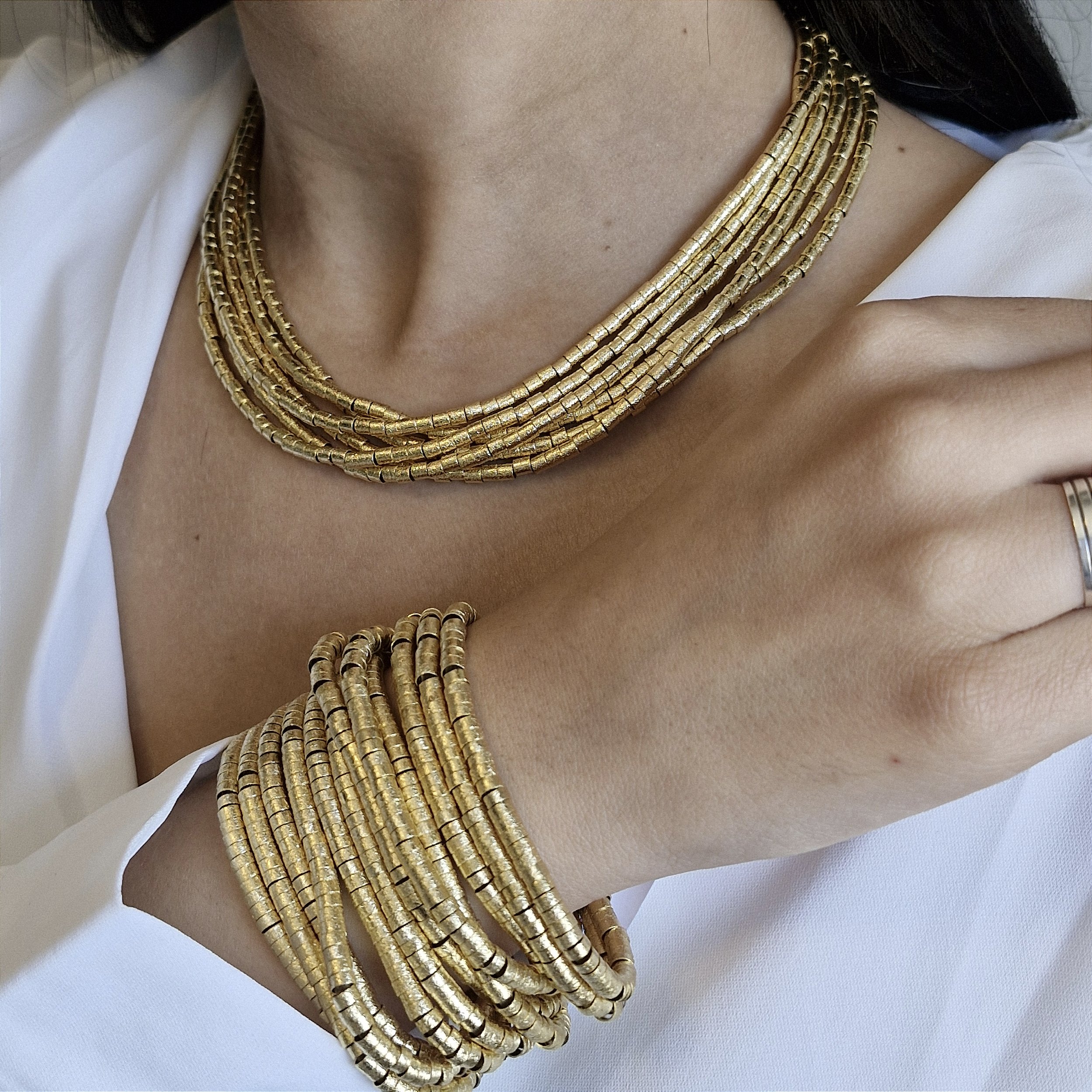 O Colar Fios está um arraso. Possui 6 fios dourados com banho de ouro 18k.
