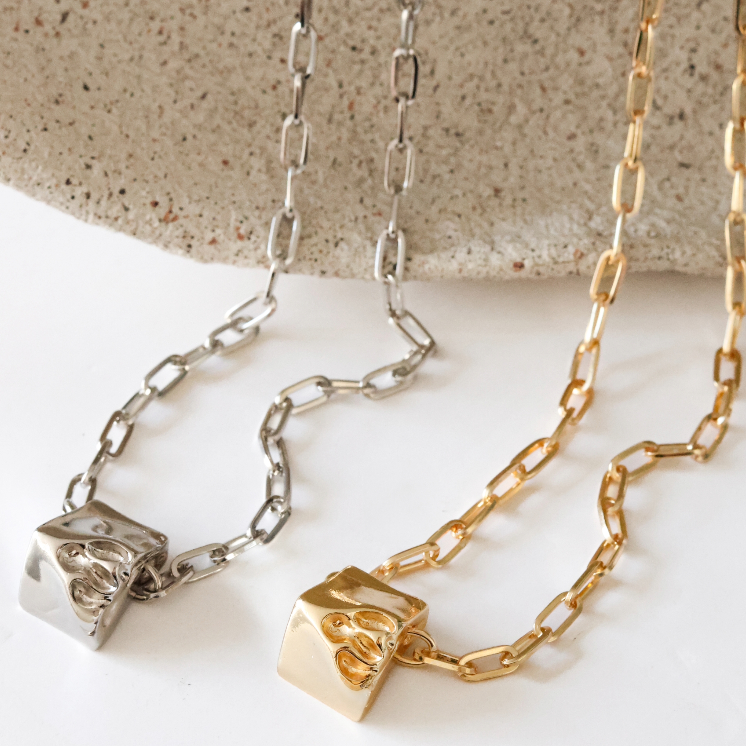 Disponível no banho dourado ou prateado, esse colar é versátil e pode ser usado sozinho ou em mix com outras correntes. Para um visual ainda mais impactante, combine com o brinco no mesmo formato de pingente e crie um conjunto irresistível.