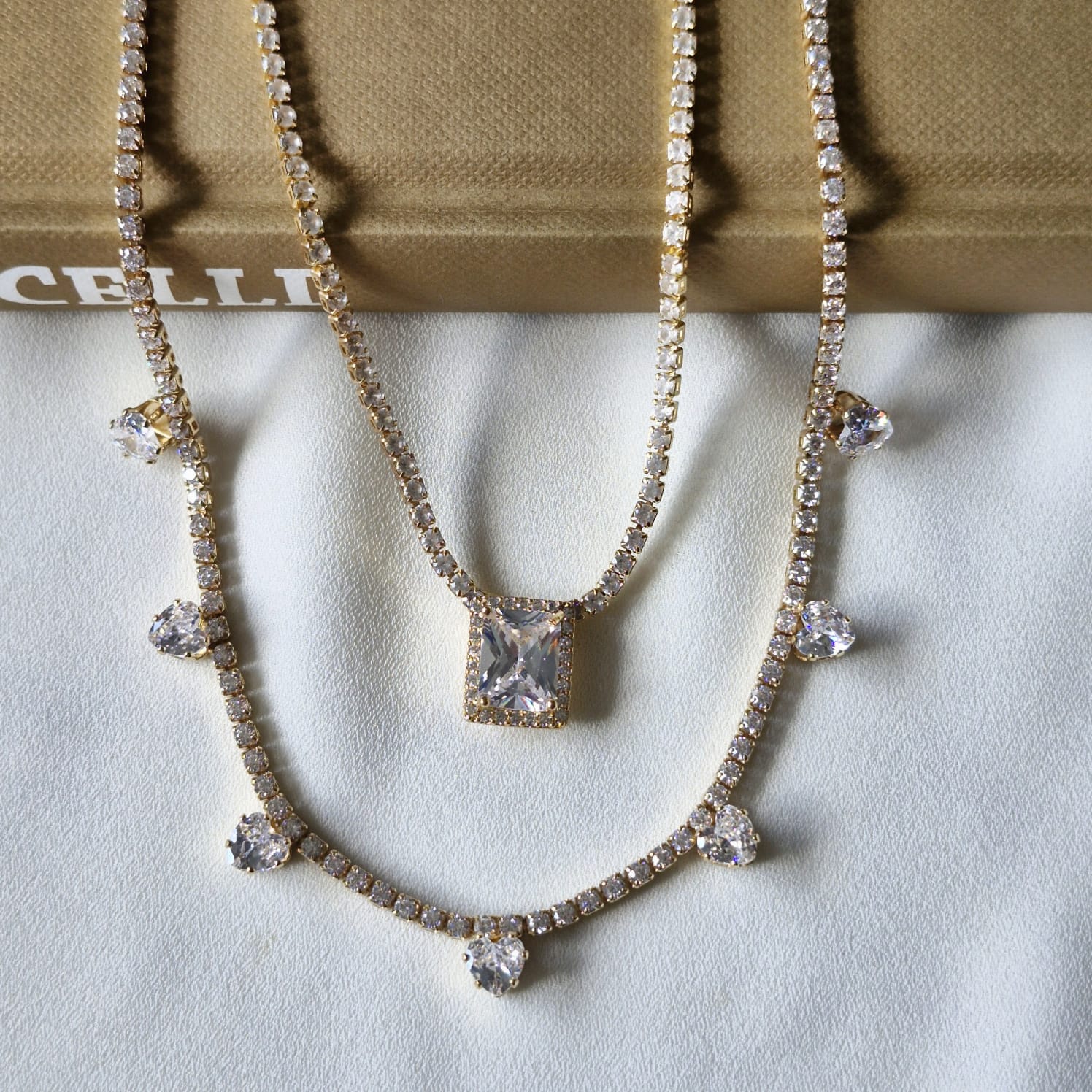 Sofisticação que atravessa tendências. O Colar Vivianne é um acessório de luxo criado para quem valoriza o brilho discreto com presença. A corrente inteira é cravejada em zircônias reluzentes, e o pingente retangular completa a composição com elegância atemporal.