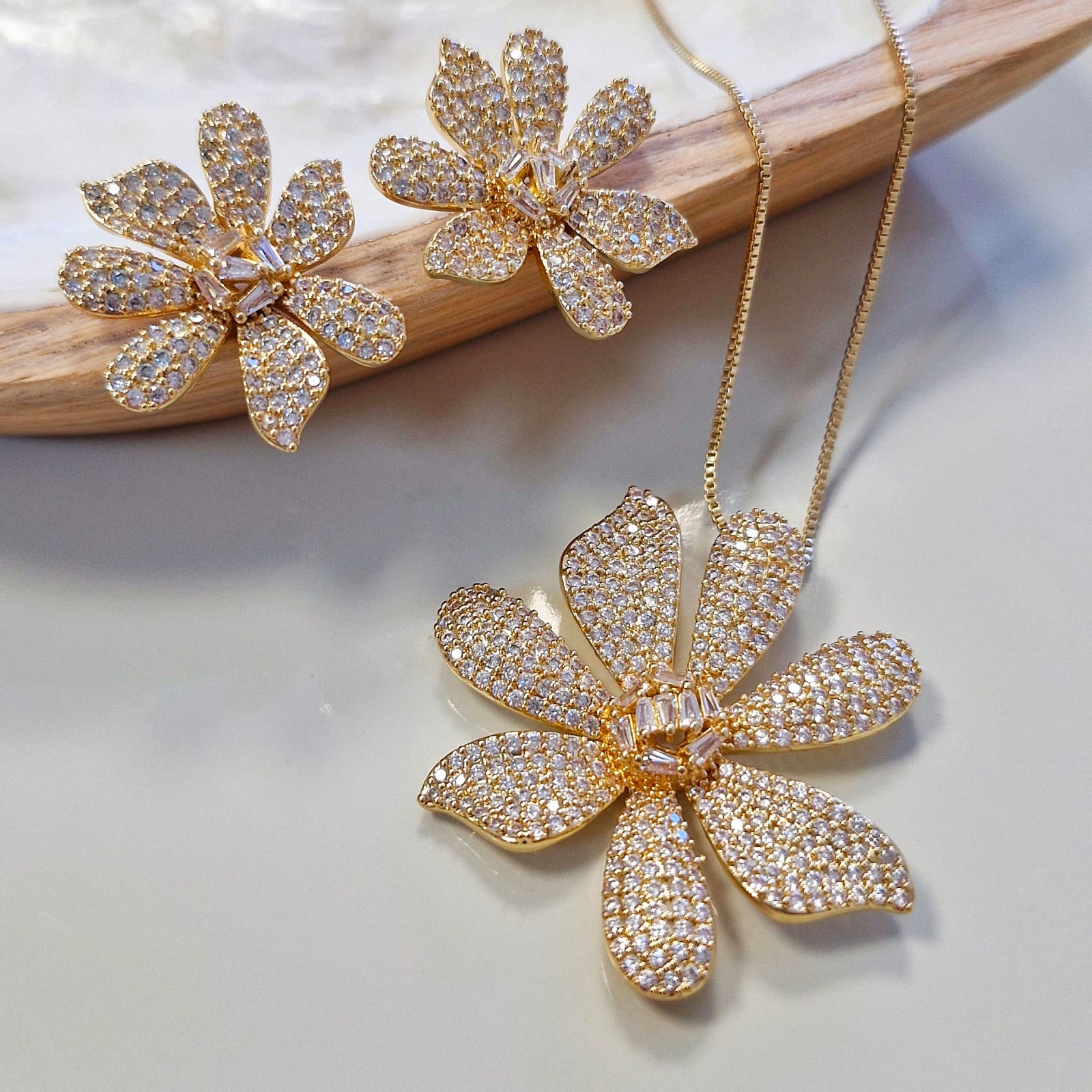 Delicado à primeira vista, marcante nos detalhes. Flor de Luz é um conjunto que celebra a feminilidade com sofisticação absoluta. O desenho floral ganha protagonismo através da cravação minuciosa de zircônias, que refletem a luz com intensidade e elegância.